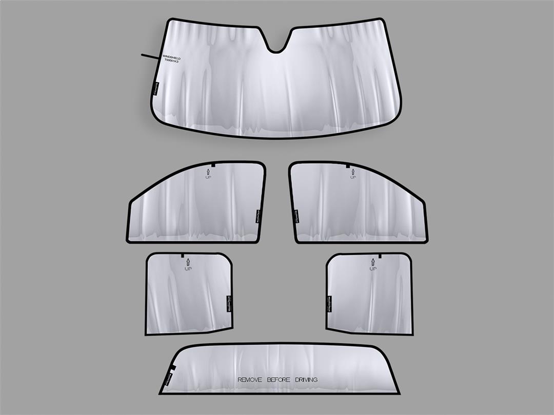 Front Vehicle Kit; Direct-Fit; Silver/ Black Reversible; Uses Sun Visors/ Friction To Hold In Place; Roll Up With Hook And Loop Strap For Storage