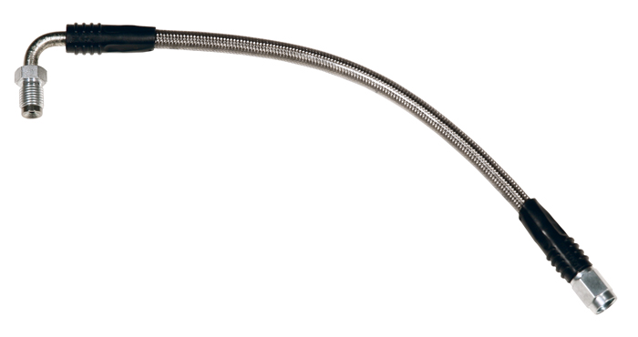 Stainless Steel Braided; 3 AN With 3/8 Inch 24 Thread Inlet/ 90 Degree Outlet; 10-1/2 Inch Long; Single