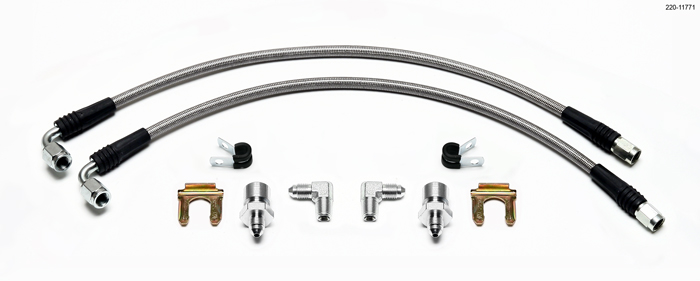 For Use With Wilwood Brake Kits Only; For Use With Wilwood Brake Kits; Braided Stainless Steel; 16 Inch Length; Set Of 2 With Caliper Fitting And Chassis Fitting